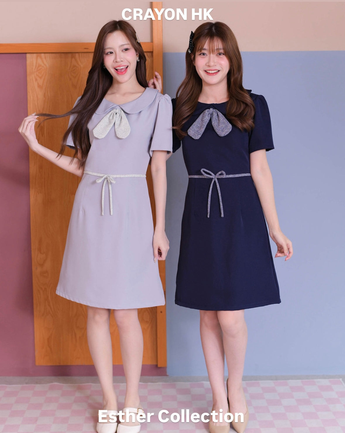 Mina Dress - 小可愛蝴蝶領連身裙- Purple 灰紫色 (CB696)