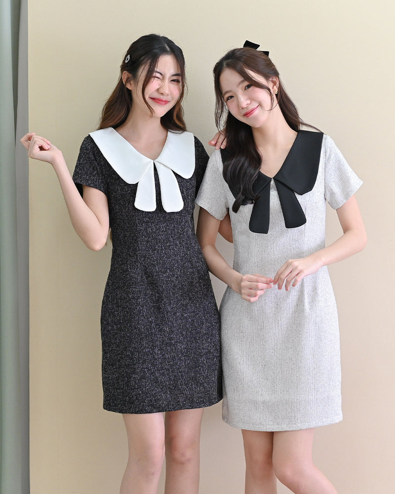 <減價清貨> Fallon Dress 拼色大花領修身連身裙- Black 黑色 (CB635)